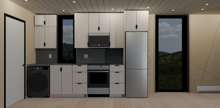 A tranquil retreat with stunning wide-angle views. Blending modern comforts like a well-equipped kitchen, full bathroom, flexible living space and efficient storage, all designed for a low environmental impact. Live in harmony with nature.